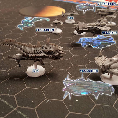 The Capitol Ship of the Eox Empire; a race that destroyed themselves in a war with their own weapon, and now exist as a planet of space necromancers. Their ships are created from bone and have no life support systems... as they are all dead. SO METAL. |